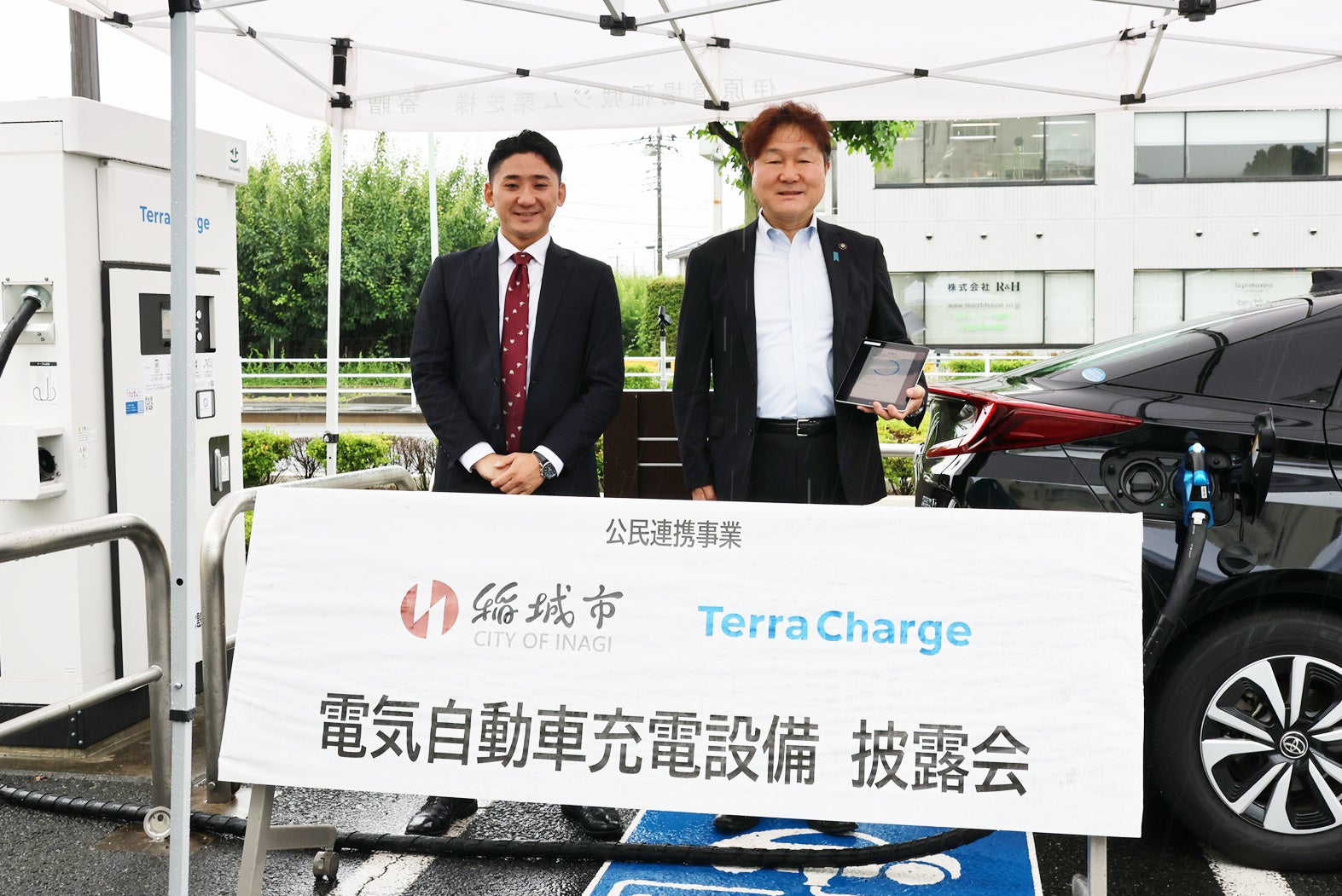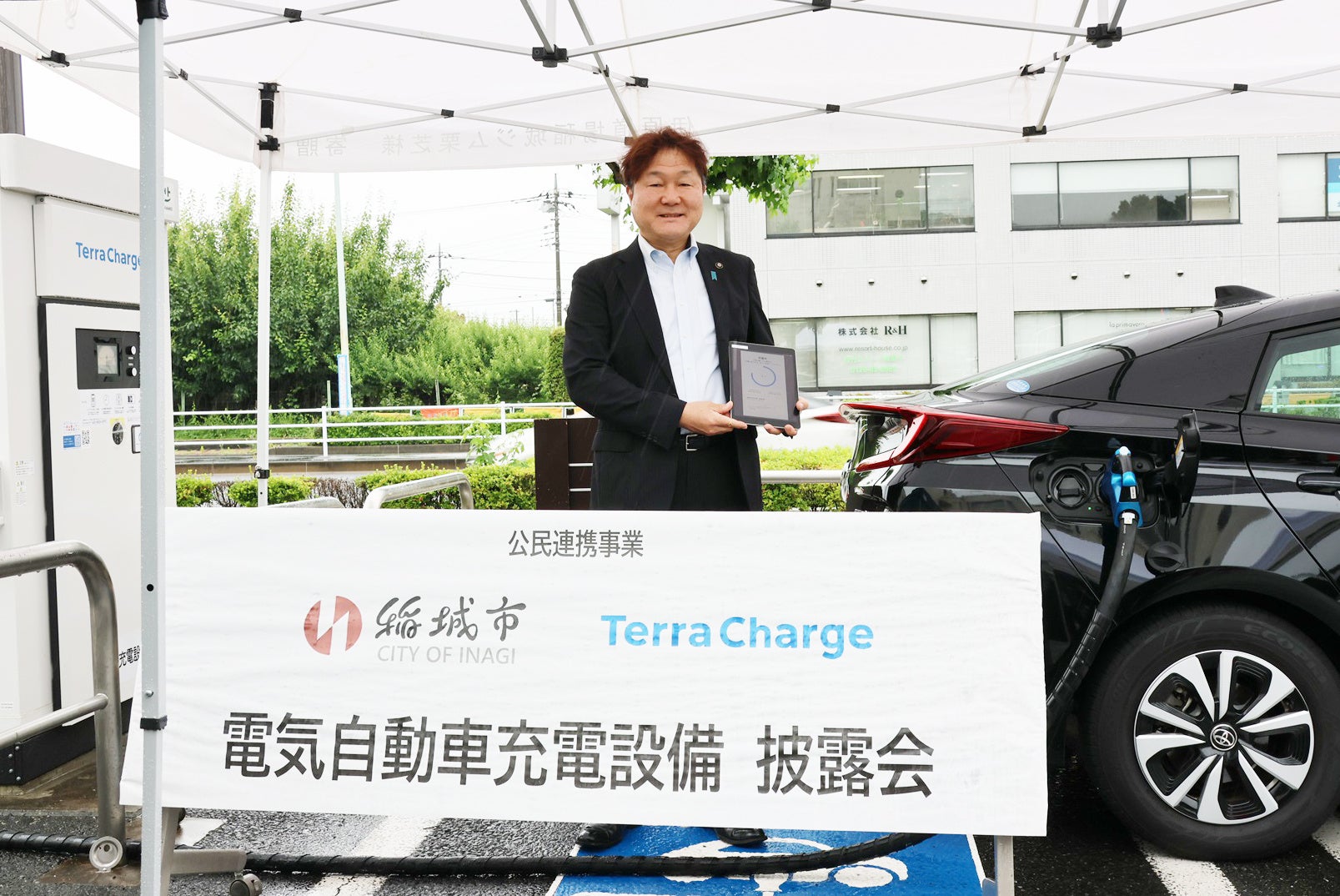 2025年6月11日(水)、稲城市役所第一駐車場(稲城市東長沼2111番地)にて、電気自動車充電設備披露会が開催されました。披露された充電設備は、電気自動車(EV)向け充電サービス「Terra Charge(テラチャージ)」を展開するTerra Charge 株式会社(本社:東京都港区、代表取締役社長:徳重徹、以下、当社)の充電サービスより利用が可能です。稲城市の髙橋 勝浩市長が、EVへの充電デモンストレーションを披露するなど、地域のEV普及の推進を後押しする催しとなりました。