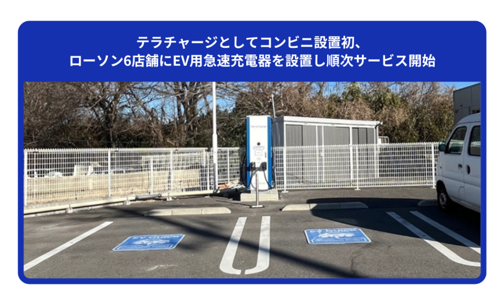 テラチャージとしてコンビニ設置初、ローソン6店舗にEV用急速充電器を設置し順次サービス開始