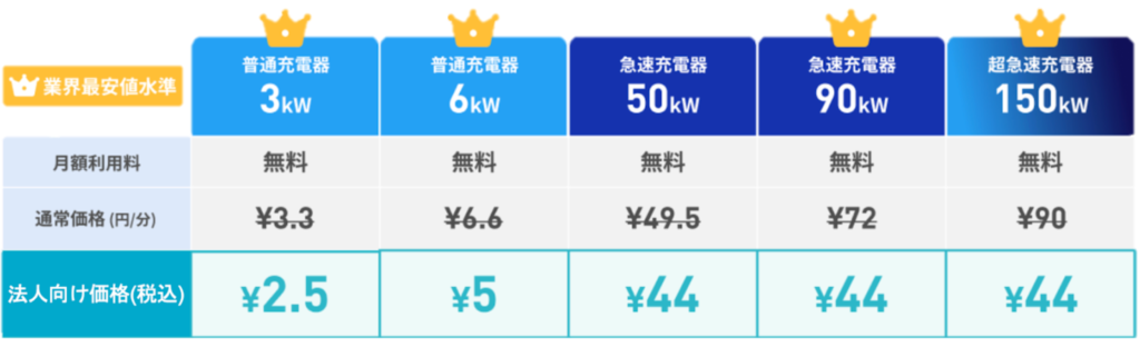 (※1)当社の「業界最安値水準」とは、全国で1,000口以上の充電器を統一価格で提供する事業者の料金体系を基準とした位置づけを指します。