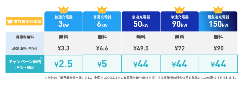 日本全国のテラチャージ充電スポットにおいて、以下の特別料金を継続して適用いたします。